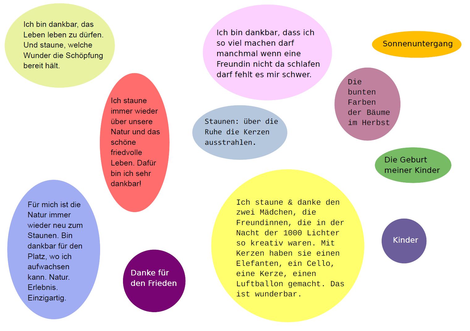 Persönliche Assoziationen zu „Staunen" und „Danken"
